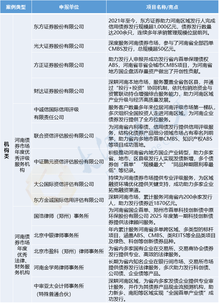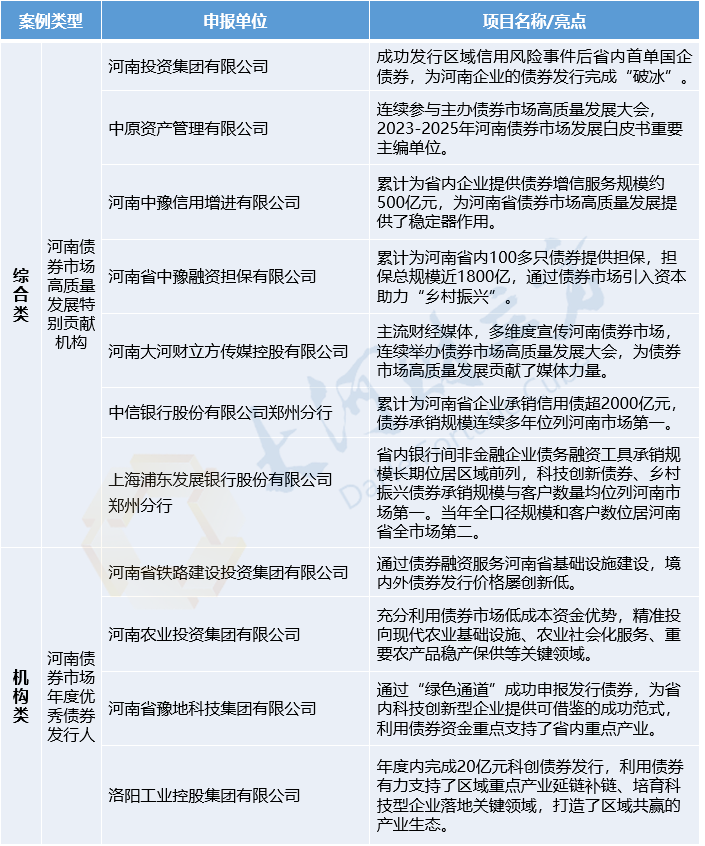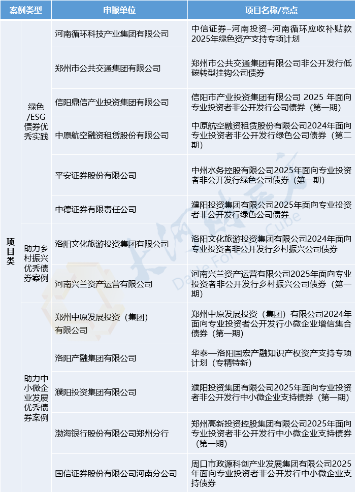 大河財立方記者了解到,為更好展示河南債券市場發展成果,助力河南健全資本市場功能,提高直接融資比重,以債券市場高質量發展服務“兩高四著力”,大會組委會于2025年10月13日至11月15日開啟“2025河南債券市場高質量發展典型案例”征集工作,其間,參與、服務、投資河南省債券的各類市場主體,踴躍申報,100多個債券案例涌入后臺。