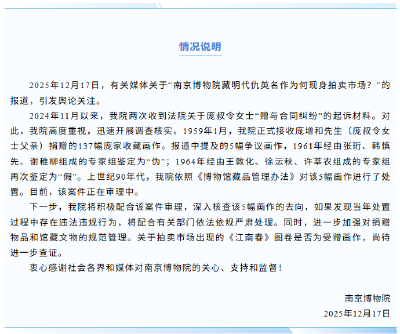 大收藏家龐萊臣后人捐贈給南京博物院的明代仇英畫作《江南春》今年突然出現(xiàn)在藝術拍賣場,估價高達8800萬元,這太離奇了。這件事如果不說明白,必將對文物捐贈賴以存在的信任造成沉重打擊。