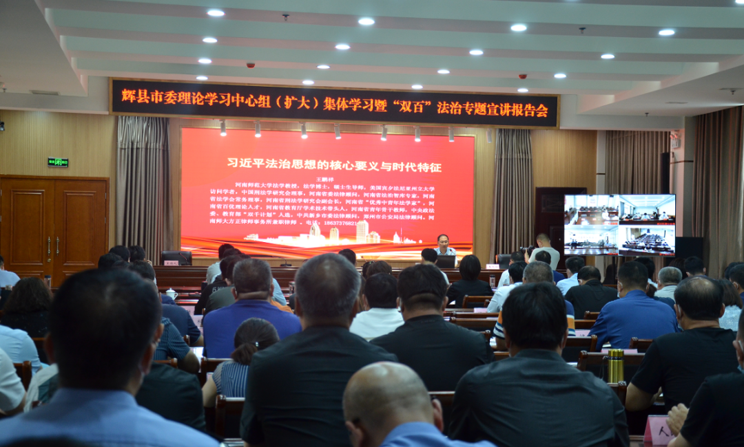 一是將習近平法治思想列入全市各級黨委(黨組)理論中心組學習重點內容,列入黨校主體班次的必修課程,列入年度述法考核重要內容。“八五”普法以來,我市先后印發(fā)《關于認真組織學習〈習近平法治思想學習綱要〉》《學習宣傳研究闡釋習近平法治思想工作方案》,制定相關學習計劃表,指導全市學習宣傳習近平法治思想。二是連年邀請專家教授,為理論學習中心組及全市200余名領導干部開展法治專場理論講座,并進行現場研討,深化思想認識,加強學用融合。三是加強國家工作人員法治教育,落實黨委(黨組)理論學習中心組學法、政府常務會議學法、領導干部應知應會法律法規(guī)清單等制度,各級政府每年至少舉辦1期以上領導干部法治專題培訓班。每年組織開展領導干部、公職人員學法用法無紙化考試。四是加強憲法宣傳教育,“八五”普法期間將市憲法文化主題公園進行改造升級,該公園于2024年被命名為“全省優(yōu)秀法治宣傳教育基地”,成為展示輝縣市法治建設成果的一張靚麗名片。五是加強青少年法治教育,規(guī)范中小學校法治副校長聘用、培訓、管理工作。積極開展模擬法庭、校園法治課、法治實踐基地開放日等系列教育活動,多維度開展青少年法治教育。六是開展“萬人助萬企”活動,常態(tài)化開展民營企業(yè)公益“法治體檢”,組織律師、法官、行政執(zhí)法人員赴企業(yè)提供“法律咨詢”“法律風險防控”等法治服務,協助企業(yè)完善合規(guī)管理制度體系,防范法律風險,提升企業(yè)管理法治化水平,進一步優(yōu)化全市法治化營商環(huán)境。