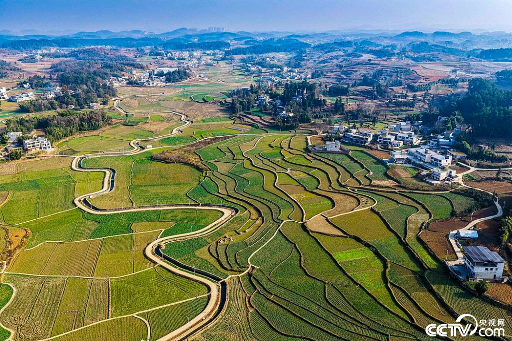 2025年12月18日,貴州省黔西市金碧鎮(zhèn)鄉(xiāng)村,綠油油的油菜田與河流、民居、樹木、藍(lán)天、白云交相輝映,宛如一幅美麗的冬日鄉(xiāng)村水墨風(fēng)景畫。視覺中國