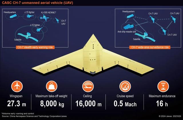 其四是通訊設備和算力設備,彩虹-7型無人機既然有任務艙,可以攜帶電子對抗/支援設備,就可以攜帶通訊和算力設備,包括高帶寬保密數據鏈,還有算力中心設備等。