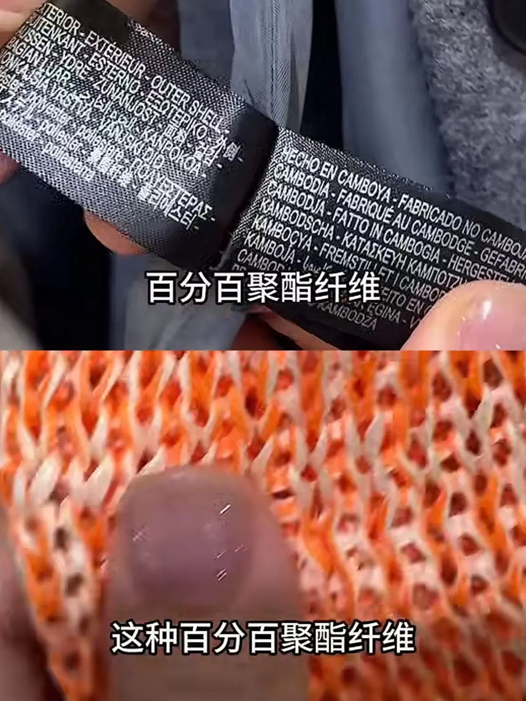 大幾百上千元買的品牌棉服上,竟也赫然寫著“100%聚酯纖維”。