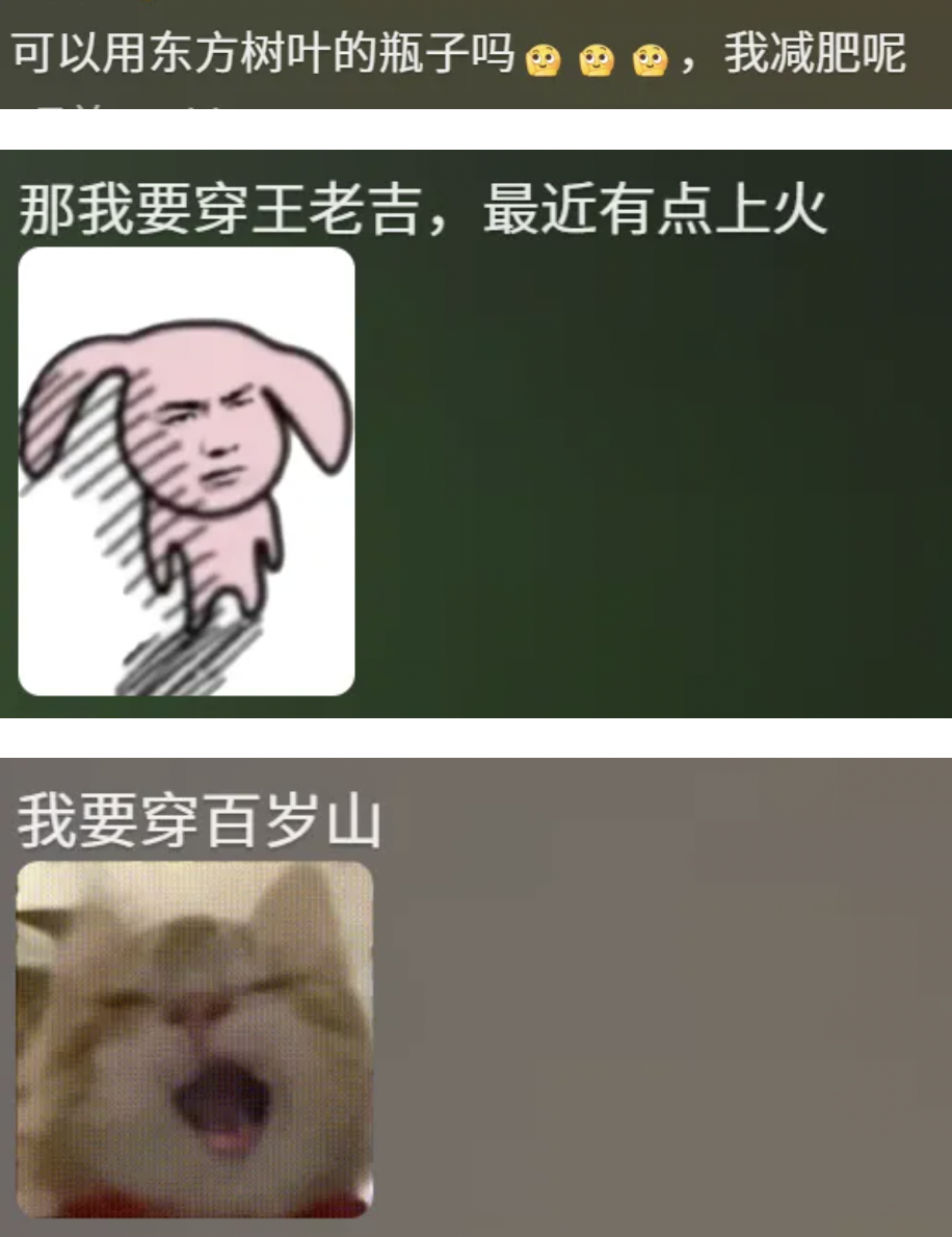 減肥的穿東方某葉 、上火的穿王某吉、想干活有勁兒的打工人穿東某特飲,想高端大氣上檔次的穿水中貴族某歲山……