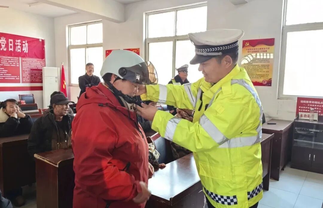 針對(duì)村民日常出行習(xí)慣,向村民現(xiàn)場(chǎng)演示了安全頭盔和安全帶的規(guī)范使用方法,并叮囑村民們騎乘電動(dòng)車、摩托車必須規(guī)范佩戴安全頭盔,駕乘汽車務(wù)必全程全員系好安全帶。