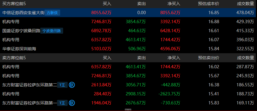 海峽創(chuàng)新(300300)今日漲16.39%,成交額34.03億元,換手率32.59%,盤后龍虎榜數(shù)據(jù)顯示,2家機(jī)構(gòu)專用席位凈買入5136.56萬元,有1家機(jī)構(gòu)專用席位凈賣出2623.75萬元。方新俠席位凈買入8055萬元,寧波桑田路席位凈買入6428萬元。