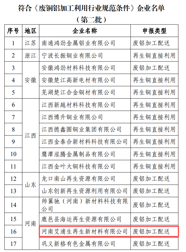 入選工信部符合《廢銅鋁加工利用行業(yè)規(guī)范條件》