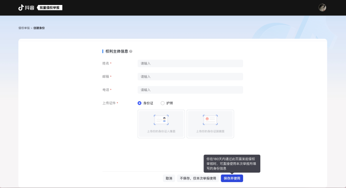 圖:抖音PC端批量侵權舉報工具支持權屬資料保存