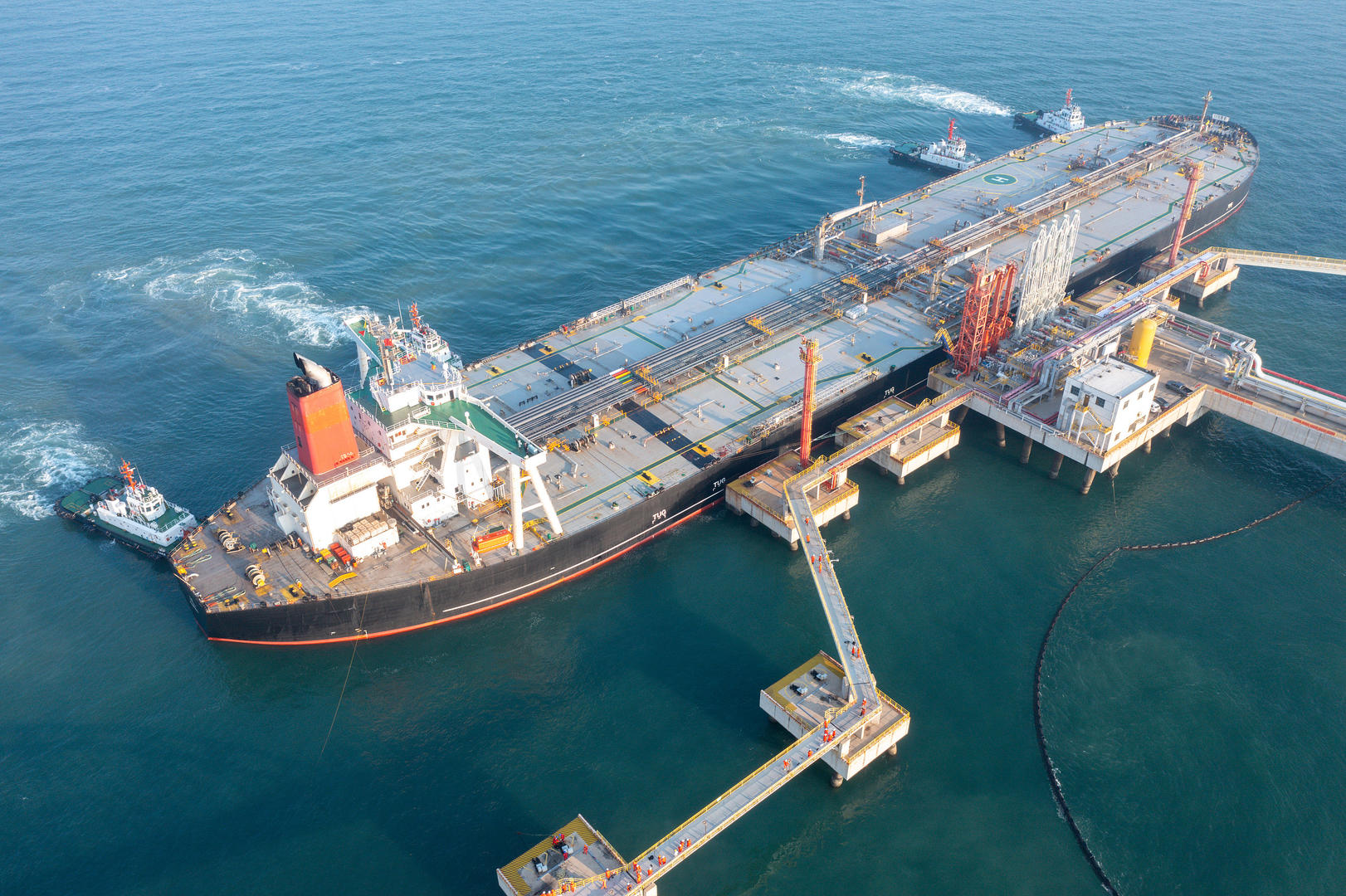 ▲12月18日,海南自貿港正式啟動全島封關后,第一批通關“零關稅”石化原輔料如期抵達洋浦。圖據視覺中國/中新社記者 駱云飛 攝