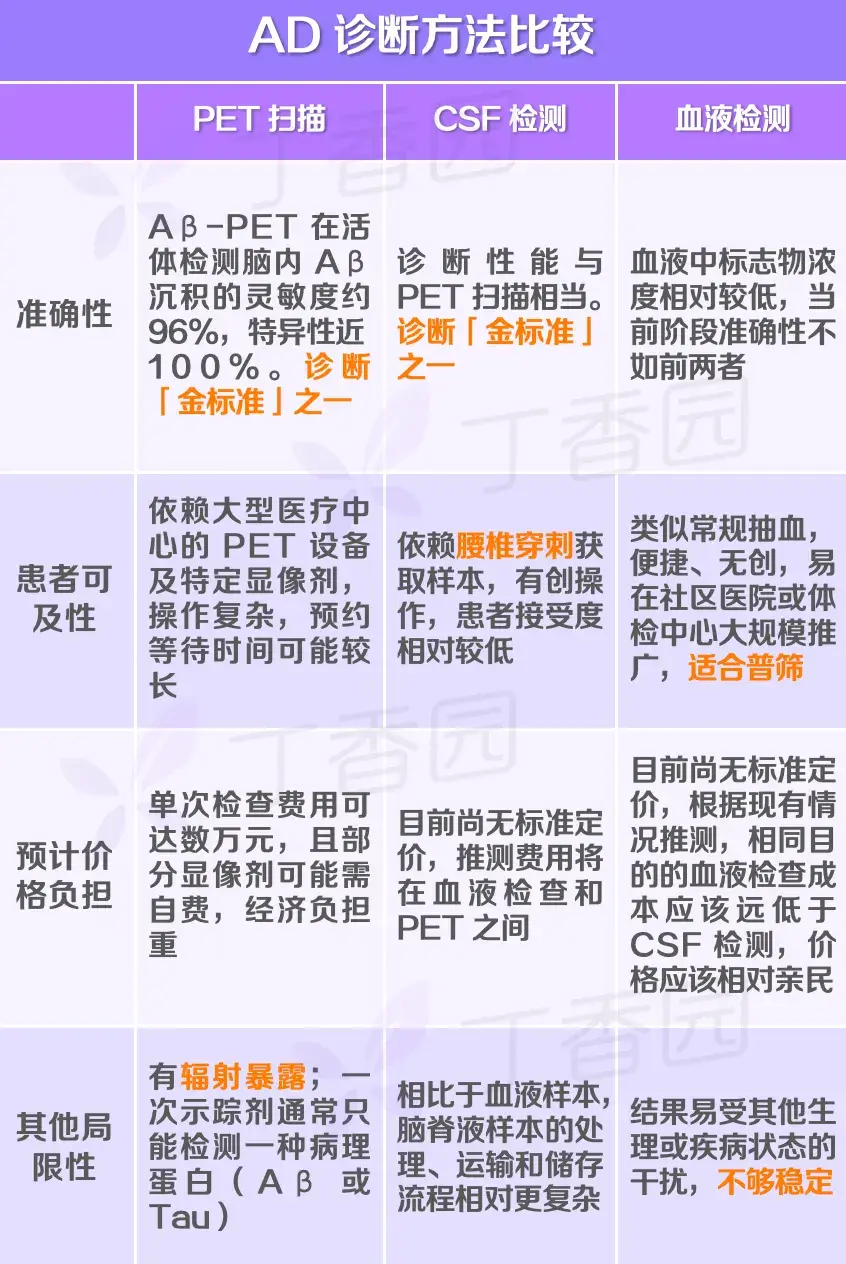 目前,AD的診斷模式正從依賴于臨床癥狀,演變?yōu)榻Y(jié)合生物標(biāo)志物證據(jù)的綜合診斷方案,主要包括詳細(xì)病史、認(rèn)知測(cè)試、常規(guī)實(shí)驗(yàn)室檢測(cè)、結(jié)構(gòu)成像(MRI/CT),以及淀粉樣蛋白(Aβ)正電子發(fā)射斷層掃描(PET)等。Aβ-PET雖是重要的評(píng)估手段,但存在成本高、可及性低、輻射等限制因素,難以實(shí)現(xiàn)廣泛應(yīng)用。