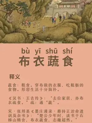 一天學(xué)習(xí)一個(gè)成語(yǔ),今日“布衣蔬食”已送達(dá),你學(xué)會(huì)了嗎?
