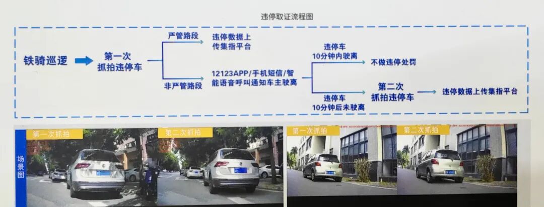 “我們這套鐵騎電子抓拍系統,左右兩個攝像頭,鐵騎在對商圈、嚴管街、群眾反映強烈的重點路段進行巡邏時,會對違停車輛進行掃描,第一次掃描后會通過交管12123平臺對車主發送短信提醒,通知車主立即駛離。對10分鐘以內駛離的車輛,不做處罰,第二次掃描仍未駛離的車輛,將依法進行處罰。”新鄭市公安局交巡警大隊副大隊長劉艷說。