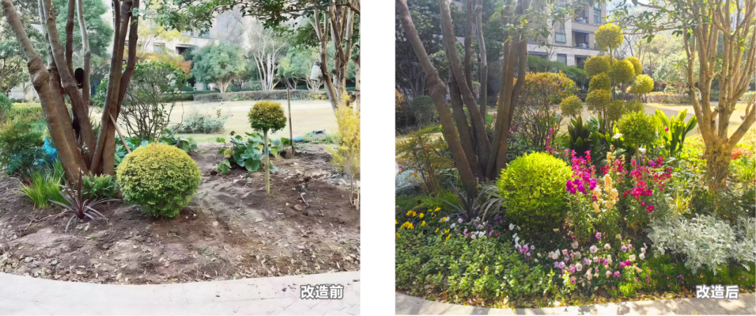 建立起“按季調整、按需供給”的科學養護方案,實現“四季有花”的景觀效果。一年來,補充草坪超1700平方米,補種南天竹、茶梅、繡球、黃金菊等灌木,打造兩處精品花境,通過有效的日常養護,灌木成活率高達95%,開花繁茂。