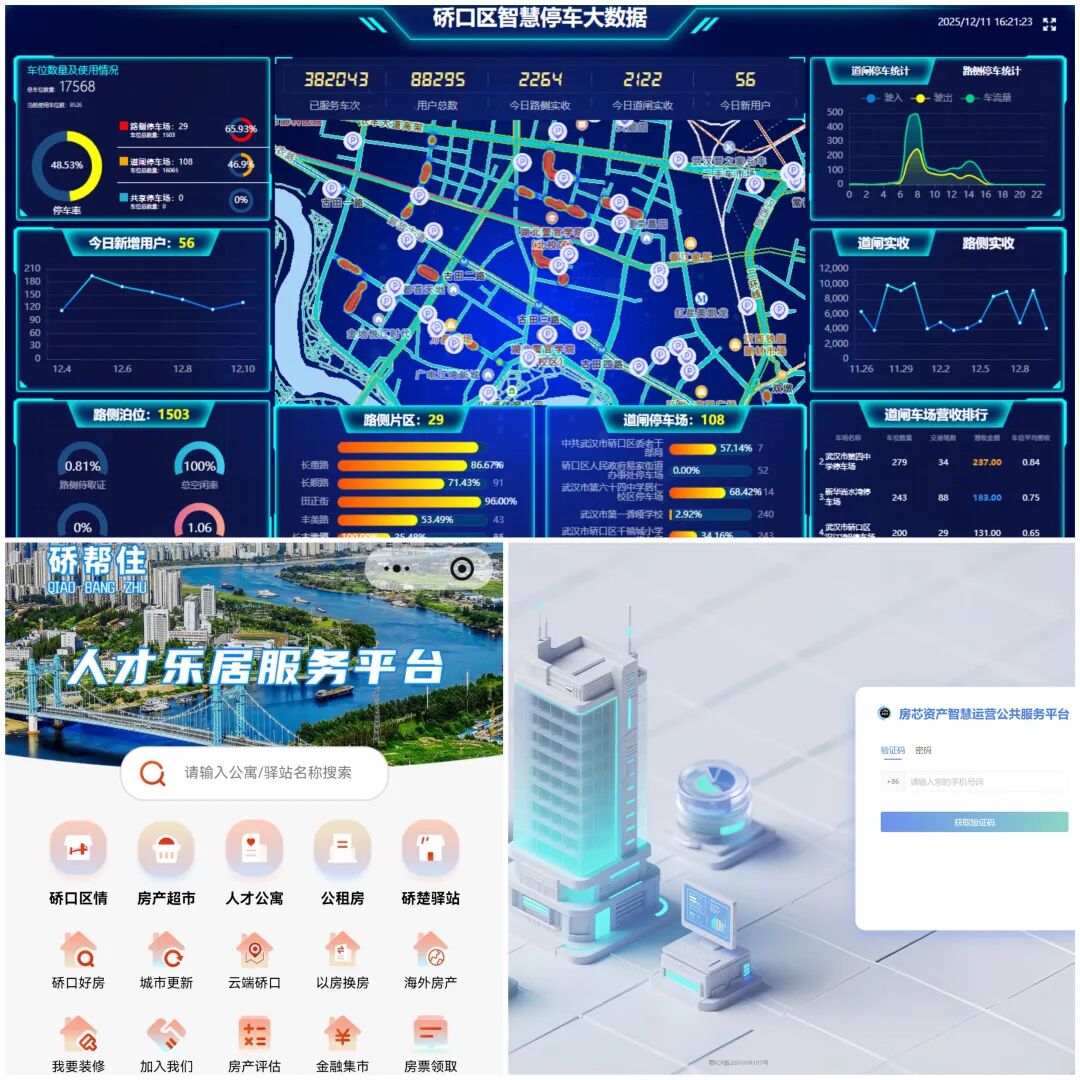 集團打破業務壁壘,整合資產、空間、數據資源,構建高效聯動生態系統。創新運營“硚幫住”“房芯資產”等數字化平臺,提升人才安居與資產運營效率;著力打造“全區智慧停車一張網”、“編外人員數字化管理平臺”等智慧管理體系,推動城市服務向智能化、精細化演進,讓城市運行更聰明、更高效。