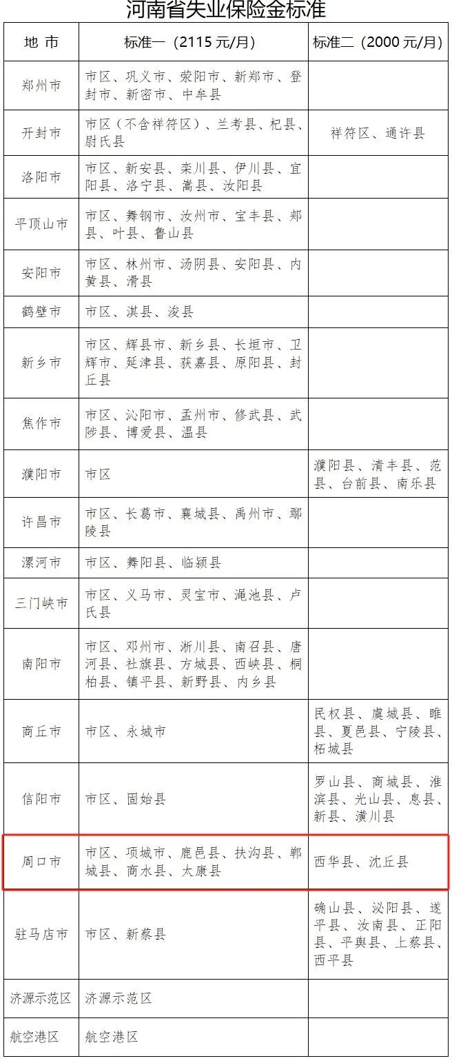 根據通知,失業保險金基本標準按照全省一類行政區域月最低工資標準的百分之九十確定,調整為2115元/月。其中,基本標準高于最低工資標準的三類行政區域,失業保險金標準按照不高于所在地最低工資標準確定,調整為2000元/月。納入省直統籌的失業保險參保單位,失業保險金標準參照鄭州市市區標準執行。調整標準所需資金由失業保險基金列支。