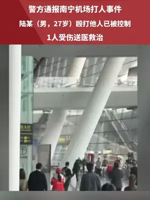 警方通報南寧機場打人事件:陸某(男,27歲)毆打他人已被控制,1人受傷送醫救治