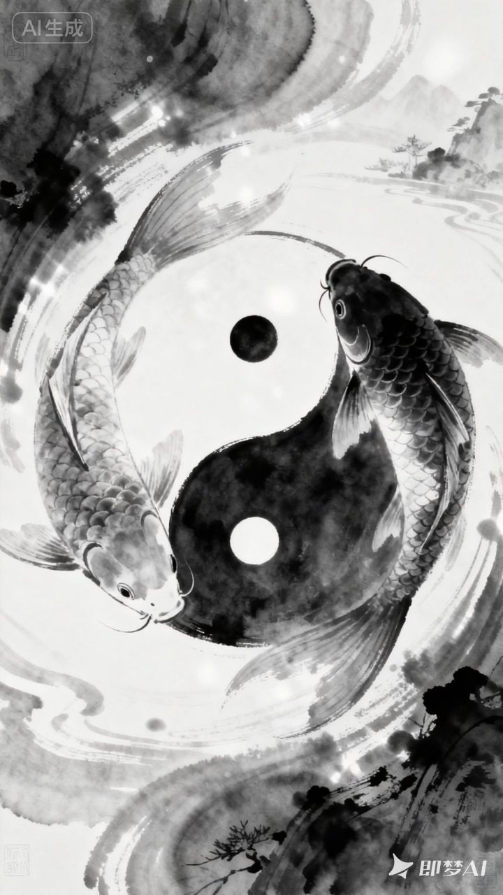 這種二分不是絕對割裂的,而是統(tǒng)一于一個整體(太極)之內(nèi)。陰陽彼此依存、滲透,共同構(gòu)成和諧的整體。如同黑白太極圖,陰中有陽眼,陽中有陰眼。