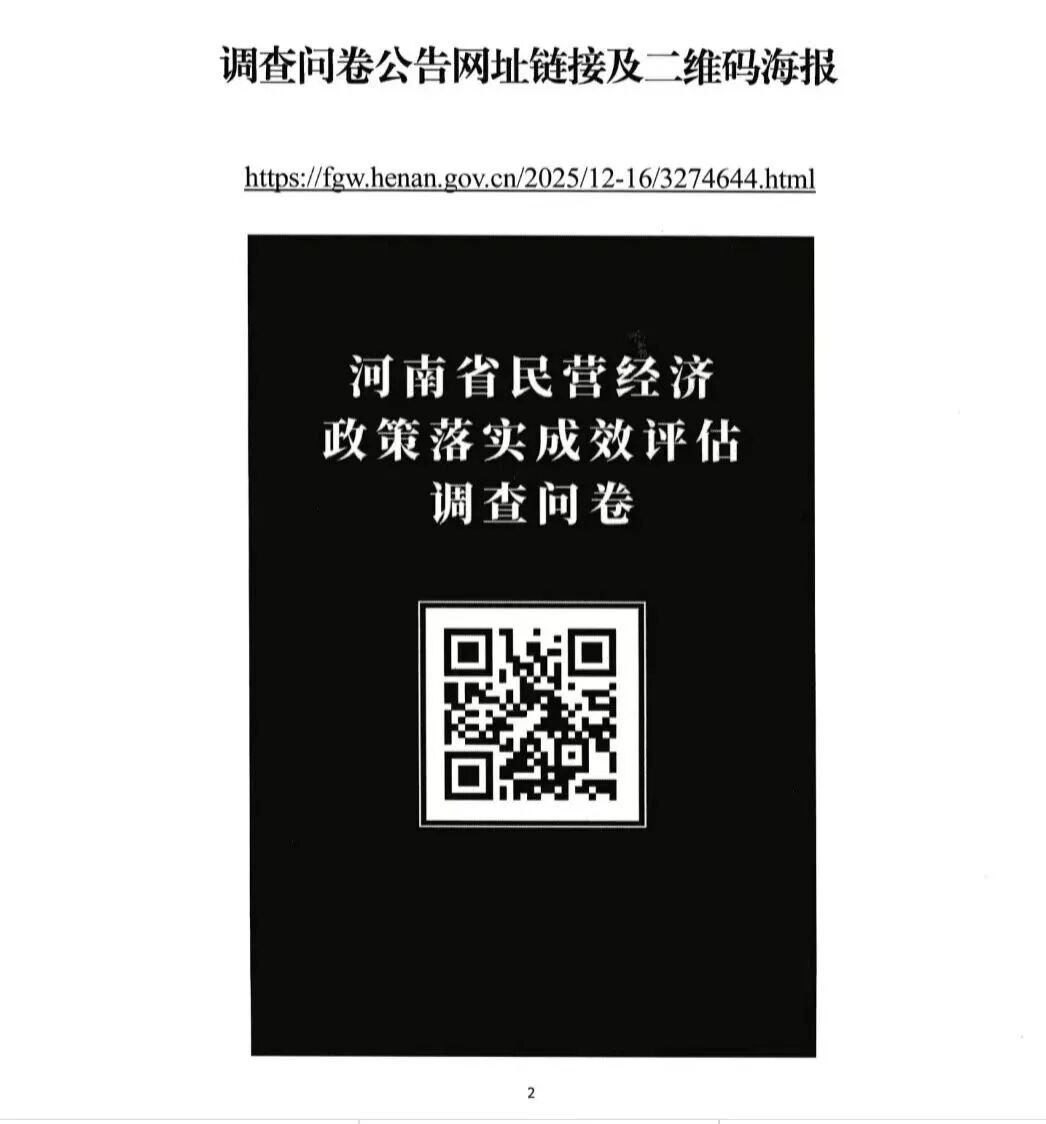 河南省民營經濟政策落實成效評估問卷調查公告