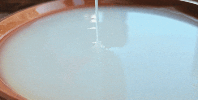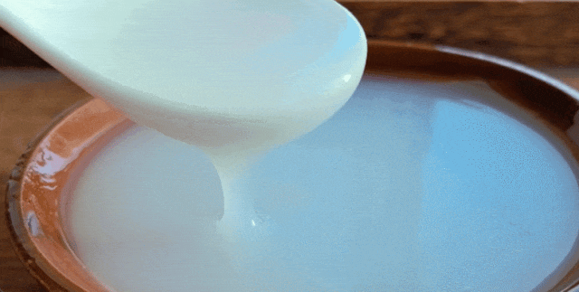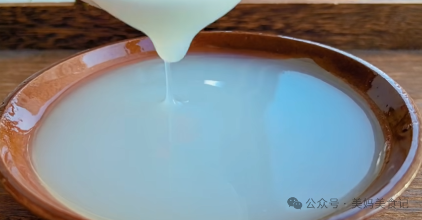 米漿靜置5分鐘放溫,避免燙傷。溫漿晶瑩溫潤,入口細膩無渣,滿是米香清甜,咽下去喉嚨瞬間滋潤。