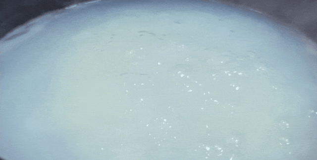 熬20分鐘后米漿漸稠,易溢鍋,每隔10分鐘順向攪動一次,翻起鍋底米防糊。1小時后米漿更稠,冒泡變猛,盯緊點,溢鍋前攪一攪或掀縫散汽,這步決定米漿好壞。