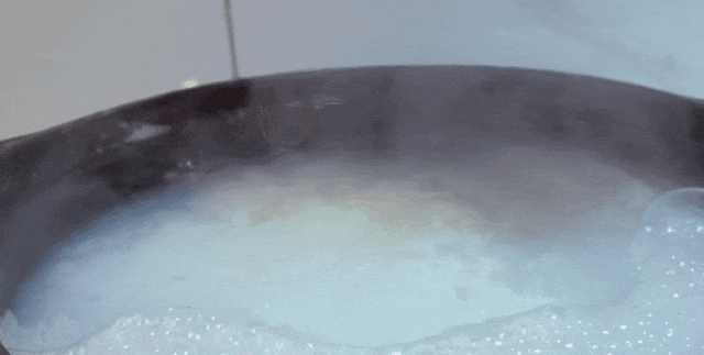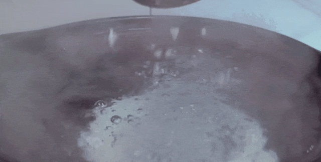 砂鍋倒2500毫升水,大火燒開后下米,攪幾下防粘底。水再次沸騰后轉最小火,保持水面微沸。火大易糊干,火小出不了米油。
