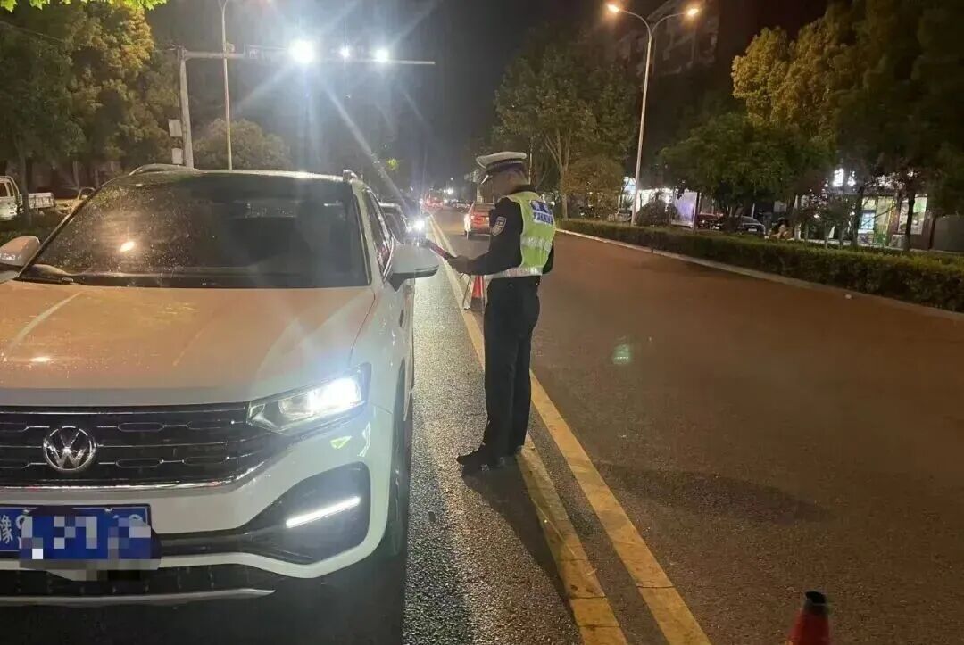 12月5日19時許,信陽光山執勤交警在城區光馬路第六中學門前路段開展夜查時,發現一輛小型轎車行駛異常,隨即將其攔停檢查。