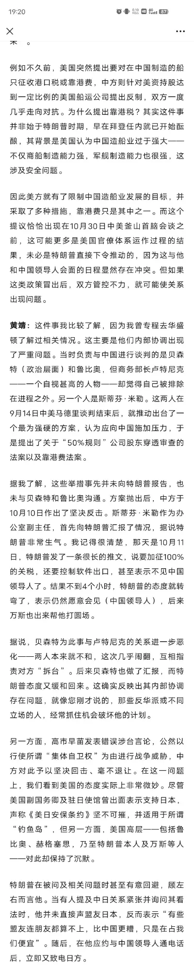 我的好朋友黃靖教授在華盛頓了解到的情況是,前幾個月美國對中國加征靠港費以及“50%穿透規則”,是商務部長盧特尼克以及斯蒂芬?米蘭搞的鬼,特朗普本人、貝嫂和魯比奧對此是不知情的。