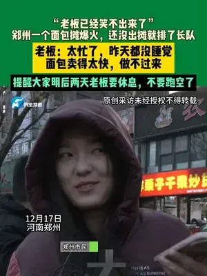 12月17日,據(jù)大參考報(bào)道,鄭州街邊一位面包攤老板,因?yàn)橐粋€(gè)騎電動(dòng)車(chē)追著他要“藍(lán)莓面包”的小女孩,意外走紅。隨后,這個(gè)樸實(shí)的老式現(xiàn)烤面包攤迎來(lái)眾多市民打卡。許多人提前排隊(duì),老板還沒(méi)出攤,隊(duì)伍就已經(jīng)排起。