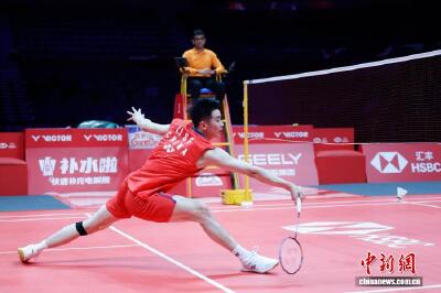 12月18日,2025匯豐世界羽聯世界巡回賽總決賽在浙江杭州舉行。在男單小組賽B組比賽中,中國選手石宇奇2比1戰勝中國臺北選手周天成。圖為石宇奇(上)在比賽中。肖健 攝