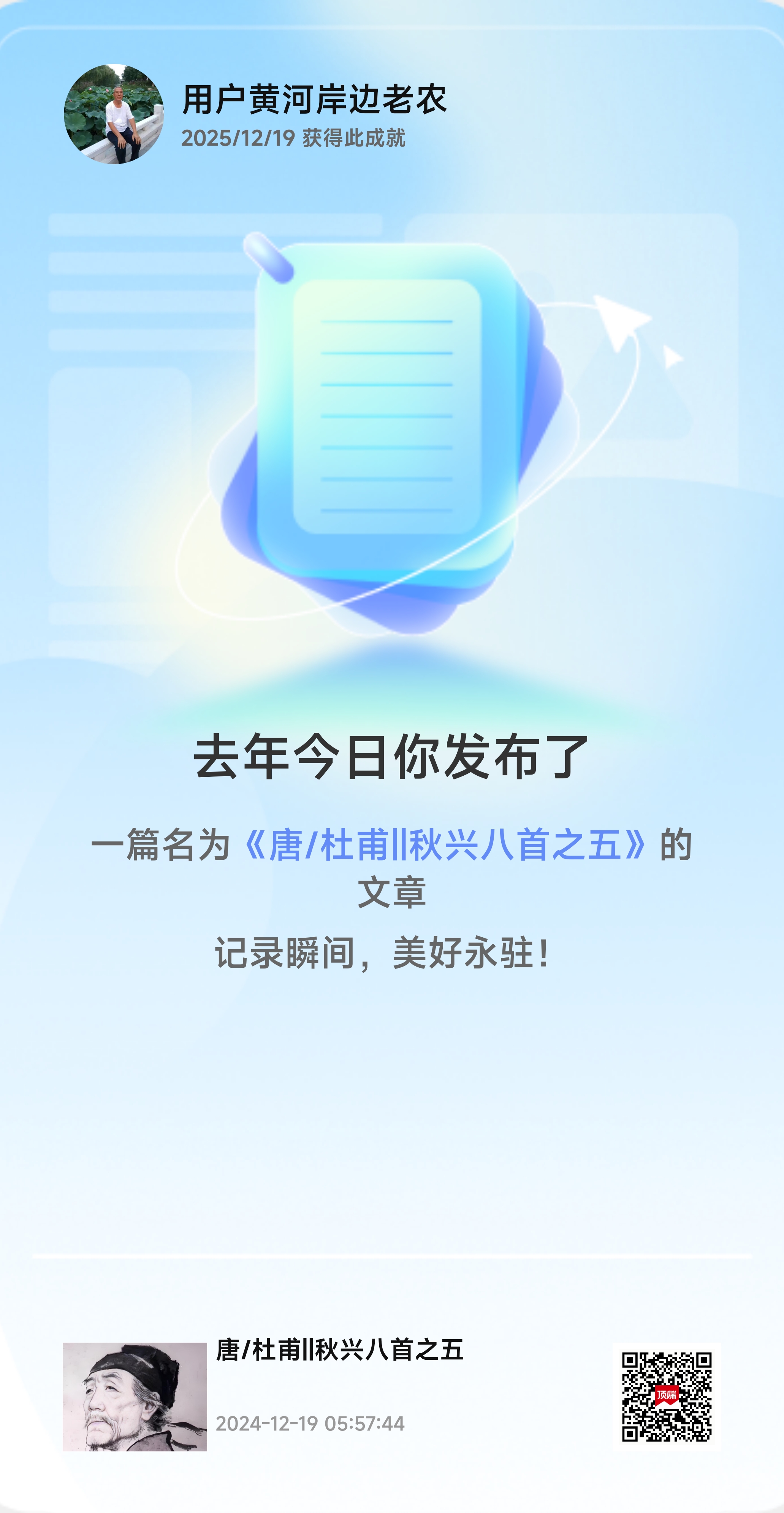 去年今日發表題為《唐/在甫‖秋興八首之五》的文章??????