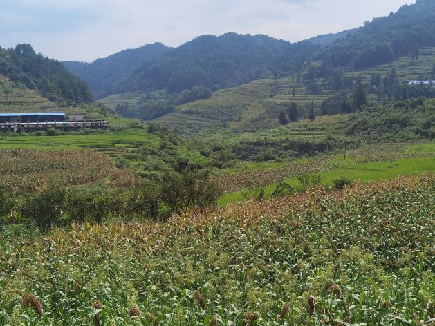 去年的時候就經(jīng)常聽人提起西坪是個好地方,今此通過,果然不假,盛夏時節(jié),到處都是高粱玉米,高粱快紅了,玉米快熟了,一片連著一片。滿山滿野都是,看著滿壩的莊稼,我大概知道,為什么歷史上會有人在遵義茅臺鎮(zhèn)釀酒了,因為此處盛產(chǎn)的高粱玉米正是釀酒的優(yōu)良原材料。