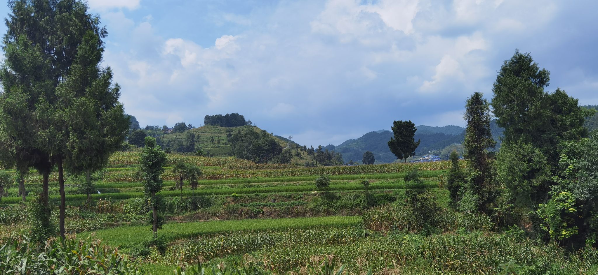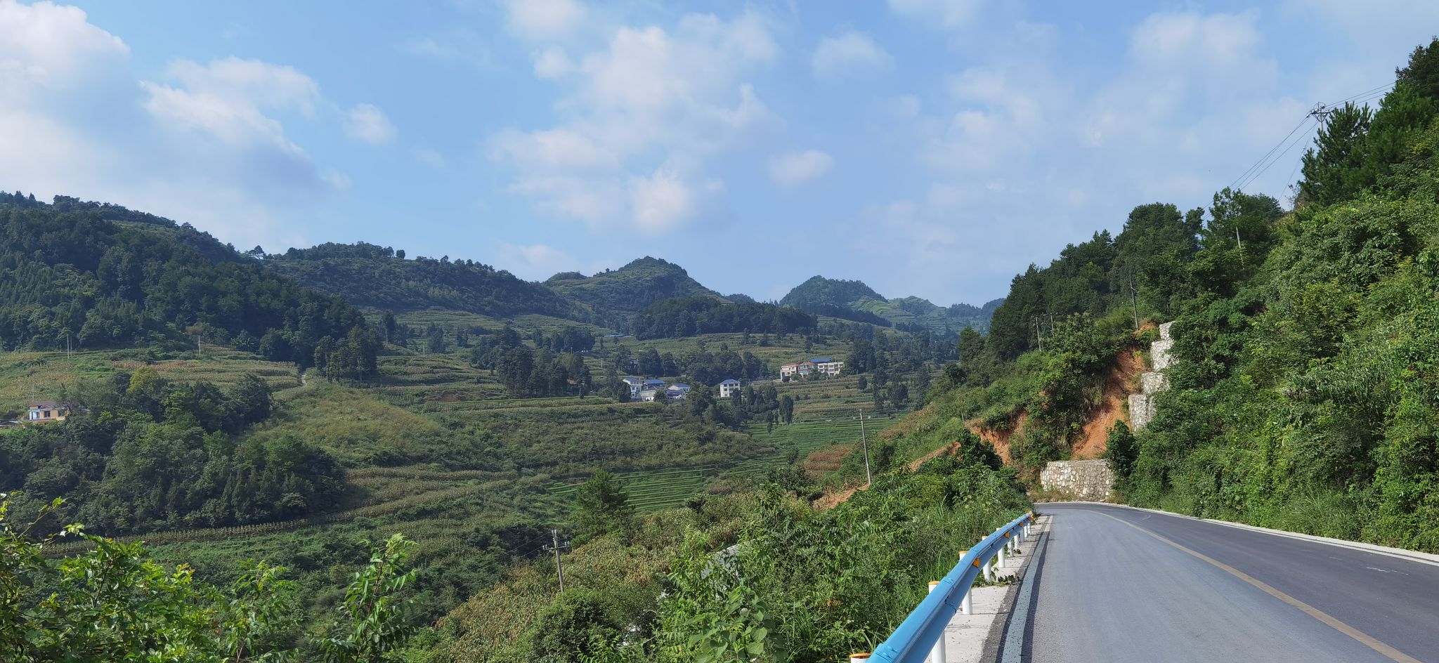又是一段山青水秀之路,高粱地,玉米地,青山遠遠,大路長長,美池波光,遠近之村寨,進松林,過伏嶺,沿盤山公路,過角口水庫而回。
