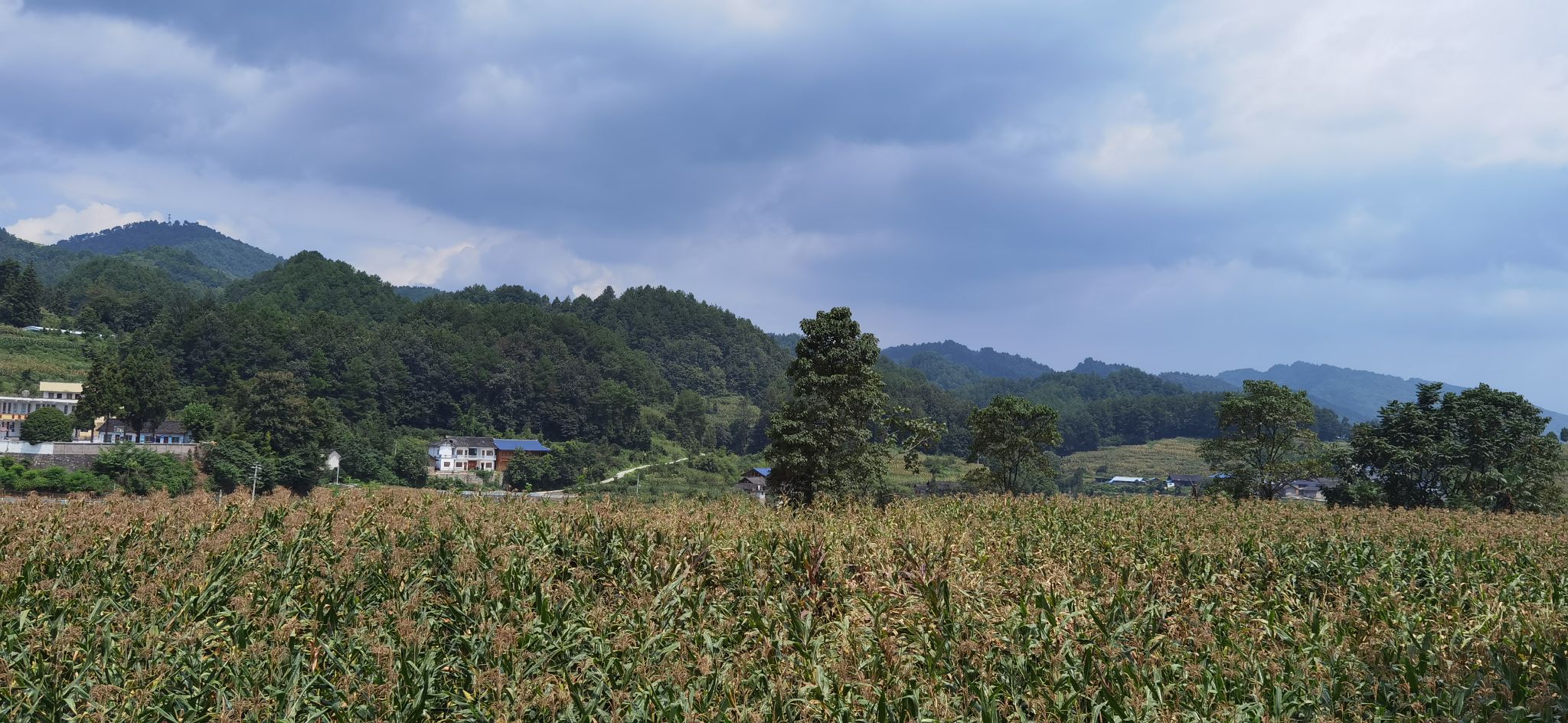 兩旁的高粱玉米,青青綠綠,略帶紅色癍點的莖桿正在向成熟轉(zhuǎn)變,掛滿枝頭的高粱垂垂而下。一路皆是,漫山遍野,不計其數(shù)。