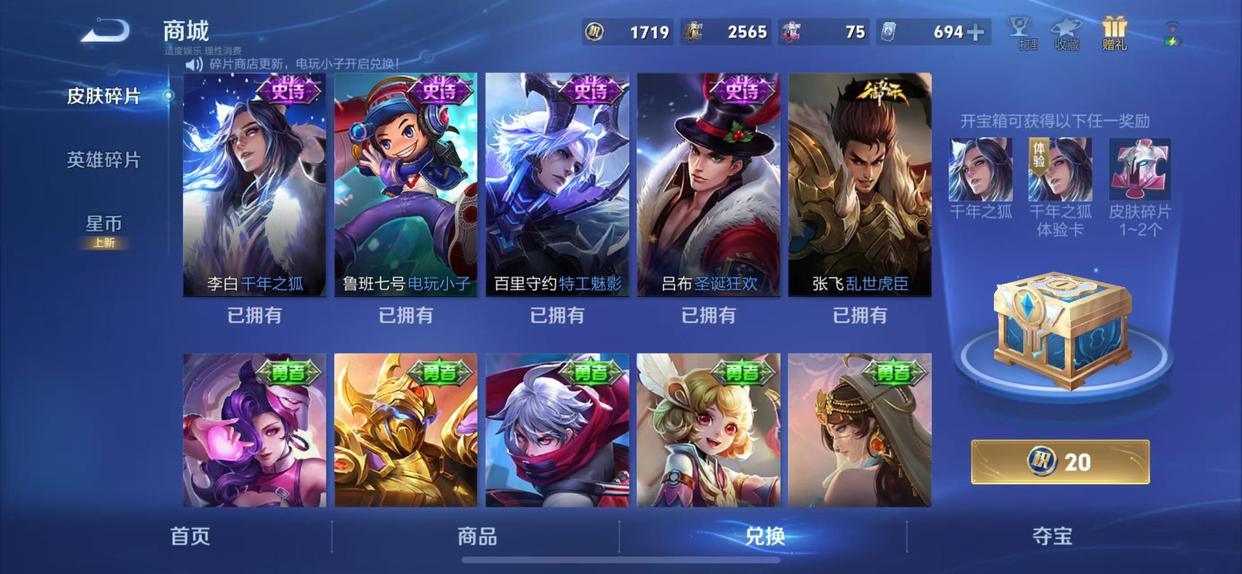 王者榮耀18號新版本已經更新,確實是沒有新皮膚上架,甚至也沒有限定皮膚返場。其實,這都是在意料之中的,玩家們也可以期待下個月。但是呢,王者榮耀碎片商店也是迎來更新,玩家備好88碎片巨賺,為什么呢?這次的碎片商店,上架了五款史詩皮膚,這里面還包含了百里守約的特工魅影,以及李白的千年之狐。尤其是守約的特工魅影,估計玩家們都等了很久吧,之前需要888點券,如今只需88個皮膚碎片,就可以兌換,簡直是美滋滋啊,你們都準備好88個皮膚碎片了嗎?