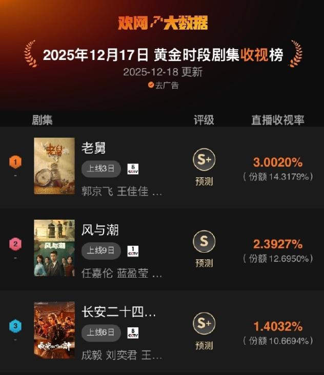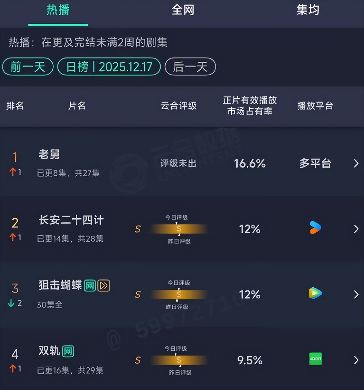 《狙擊蝴蝶》大結局后,這部劇成功登頂,我們都知道,一部劇大結局后,正片有效市場占有率肯定會下降,這樣一來,排在后面的《長安二十四計》就有機會了,萬萬沒想到的是,有一部劇竟彎道超車,而這部劇就是《老舅》。