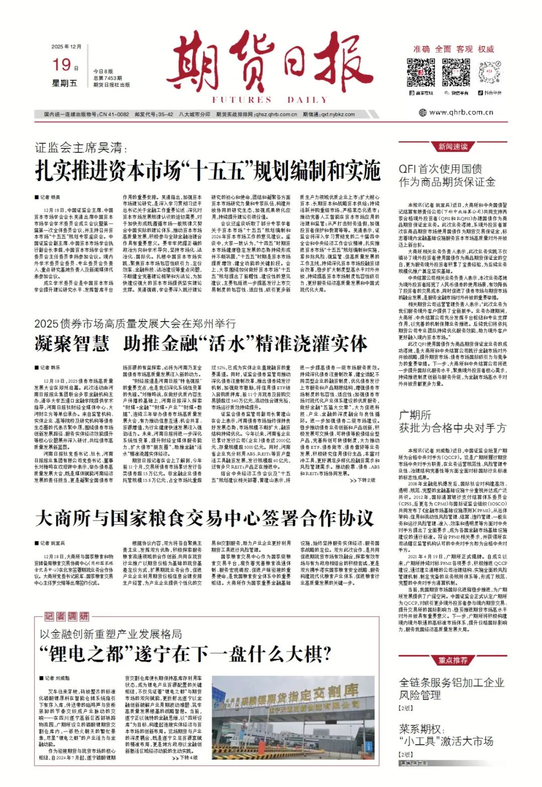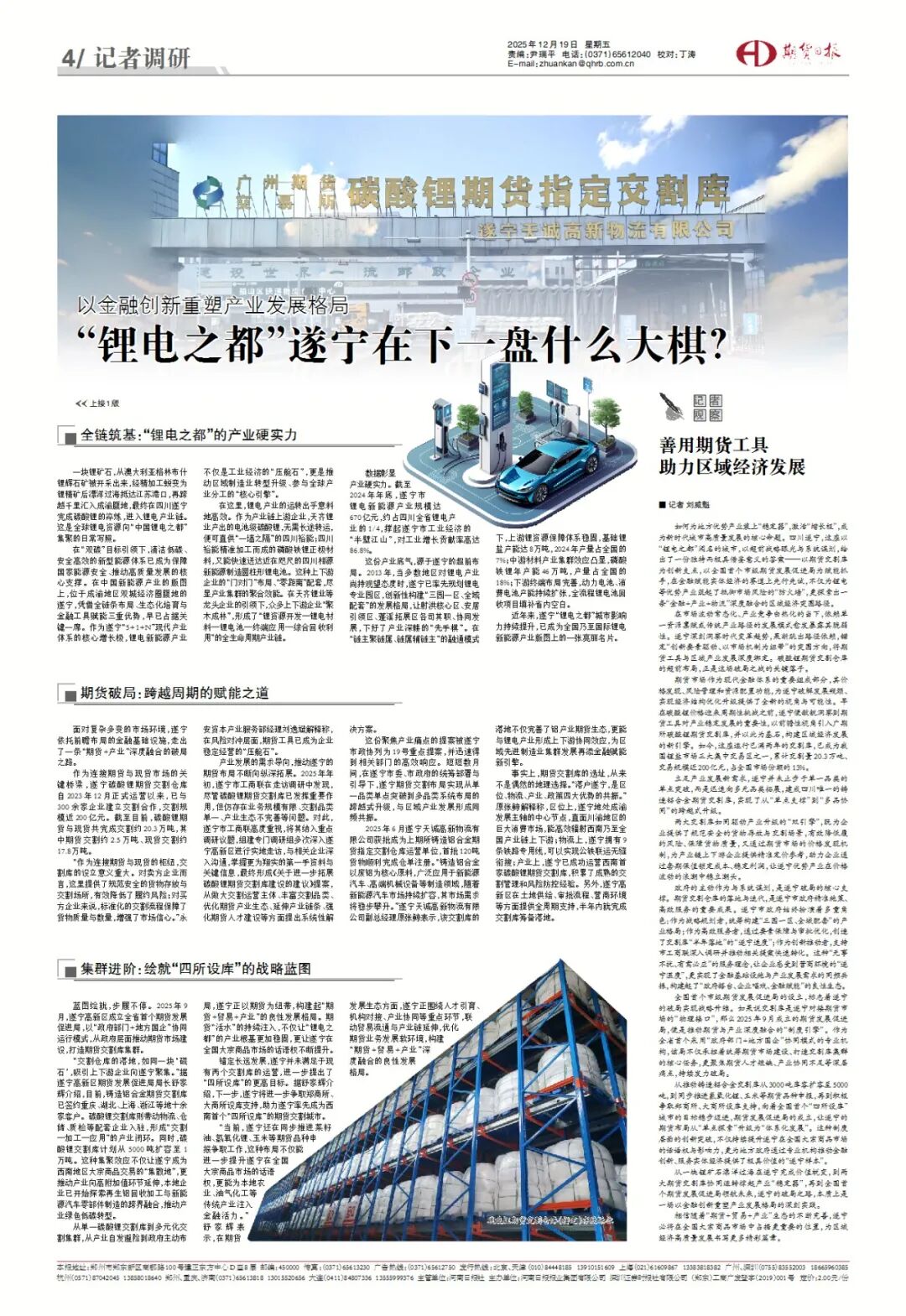 從單一碳酸鋰交割庫到多元化交割集群,從產業自發避險到政府主動布局,遂寧正以期貨為紐帶,構建起“期貨+貿易+產業”的良性發展格局。期貨“活水”的持續注入,不僅讓“鋰電之都”的產業根基更加穩固,更讓遂寧在全國大宗商品市場的話語權不斷提升。
