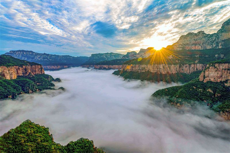 別人總說“太行之魂在八里”,親臨其境才懂這話的分量。清晨的峽谷里,薄霧像輕紗似的繞著青山,溪水潺潺淌過青石板,濺起細碎的水花,空氣里混著草木的清香與濕潤的水汽,深吸一口,連心肺都跟著透亮。