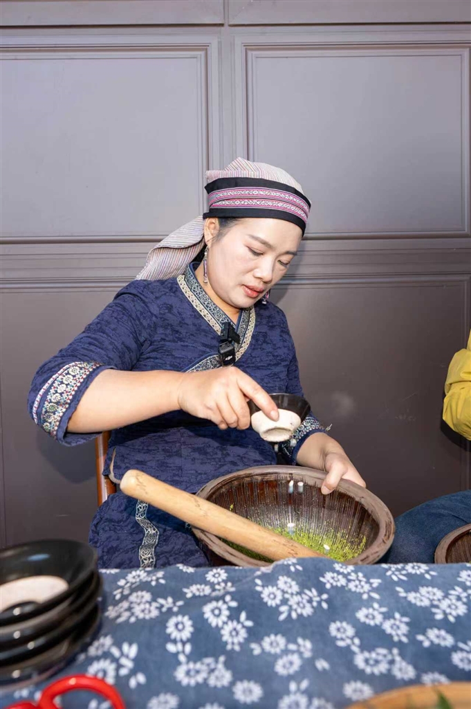 龍南傳統小吃制作技藝非遺項目代表性傳承人黃琳在制作擂茶。