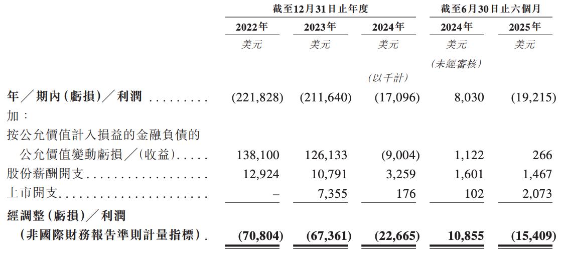 按非國際財務報告準則計量,英矽智能2022年、2023年、2024年度的經調整凈虧損分別為7080.4萬美元、6736.1萬美元、2266.5萬美元。2025年上半年,該公司的經調整凈虧損約為1540.9萬美元,2024年上半年為經調整凈利潤1085.5萬美元。