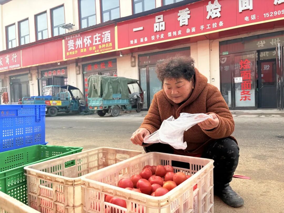 另一家商戶門前,老板付雨的母親正在幫顧客挑選西紅柿,他們家從父輩就開始干蔬菜批發生意,現在已經有30多年了,積累了不少老顧客。