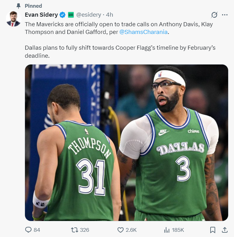 北京時間12月19日,ESPN記者Shams透露,克萊-湯普森、丹尼爾-加福德、丹吉洛-拉塞爾、安東尼-戴維森已經(jīng)確定被擺上貨架。隨后美記埃文-斯迪瑞繼續(xù)透露,在交易截止日之前將以狀元庫珀-弗拉格進行重建,克萊、濃眉等人籌碼的交易籌碼。