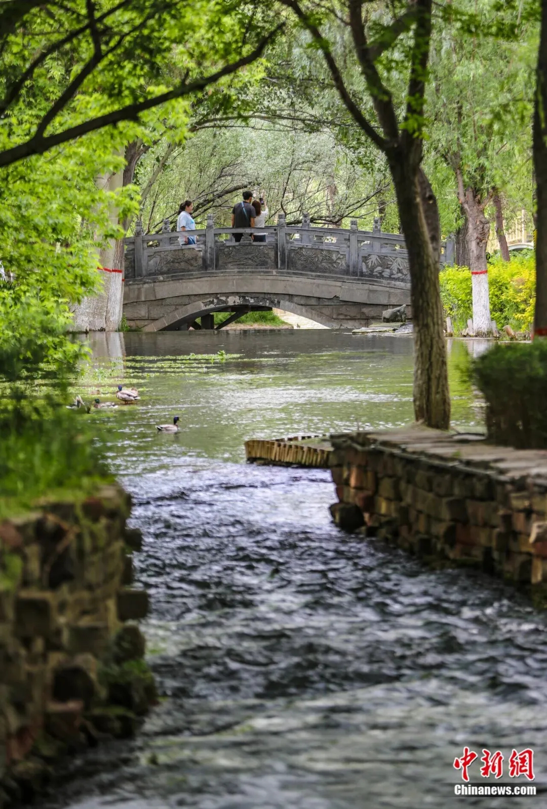 水磨溝公園,游人在小橋賞景。烏魯木齊晚報全媒體記者 米熱扎提·木塔力甫 攝