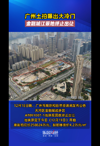 觀點網(wǎng)訊:12月18日,廣州公共資源交易中心公告,原定于12月20日10時出讓的天河金融城起步區(qū)AT091007-1地塊、白云區(qū)增槎路以西AB3804019地塊雙雙終止出讓。