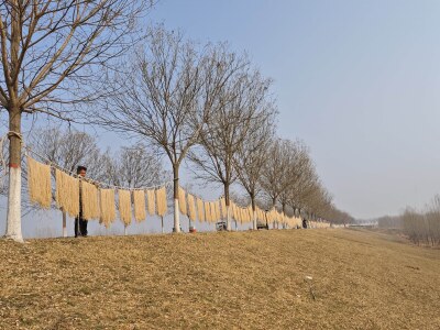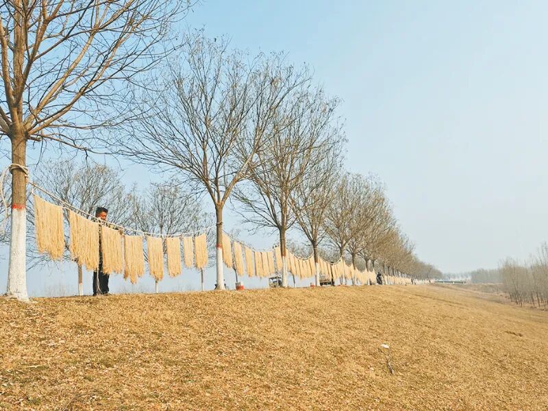 仲冬時節,暖陽和煦。12月16日,駐足在封丘縣曹崗鄉黃河大堤旁,一排排晶瑩剔透的紅薯粉條垂掛如簾,在日光下舒展著腰肢。醇厚的淀粉香氣隨風漫溢,勾勒出鄉村的靈動生機,彰顯著特色產業蓬勃生長的強勁活力。