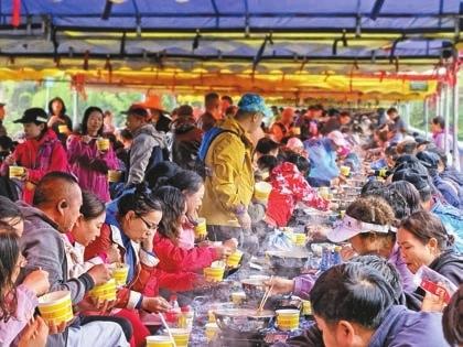 烏當(dāng)區(qū)下壩村貴陽(yáng)·水東普渡盤(pán)龍山森林康養(yǎng)跑活動(dòng)長(zhǎng)桌宴現(xiàn)場(chǎng)。