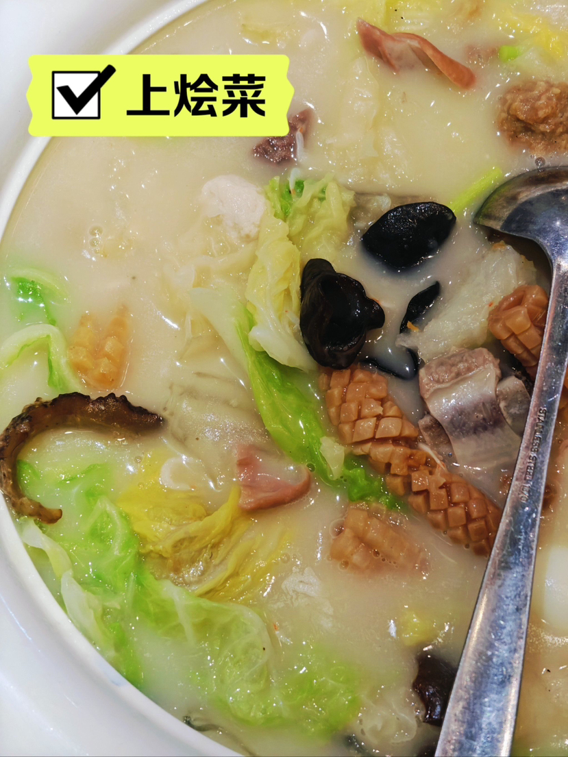 做法講究"燴"字精髓,先將五花肉煸出油脂,加蔥姜爆香,添高湯煮沸;放入酥肉、丸子、皮渣燉至入味,再下白菜、海帶、粉條慢煨,加鹽、生抽調(diào)味,出鍋前撒蒜苗提香。