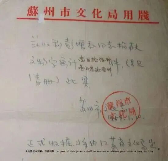 收到龐家捐贈(zèng)文物字畫的暫時(shí)收據(jù)