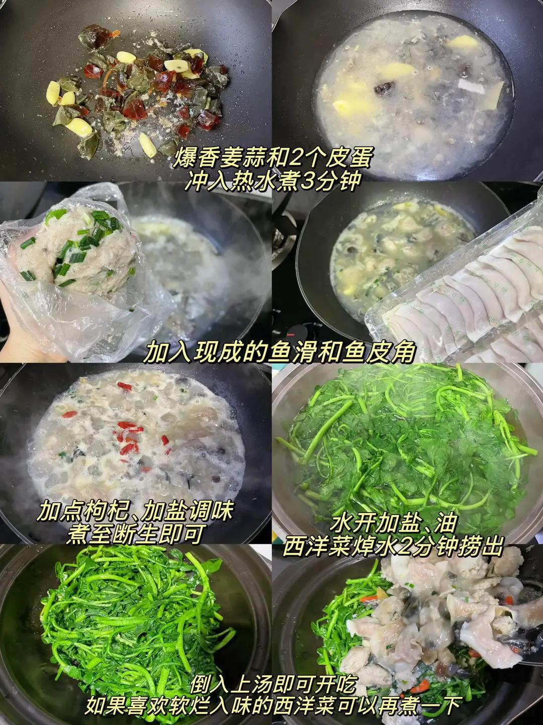備料:西洋菜一把、魚餃十來顆(超市冷柜有賣)、姜兩片、鹽適量、胡椒粉少許、香油幾滴。