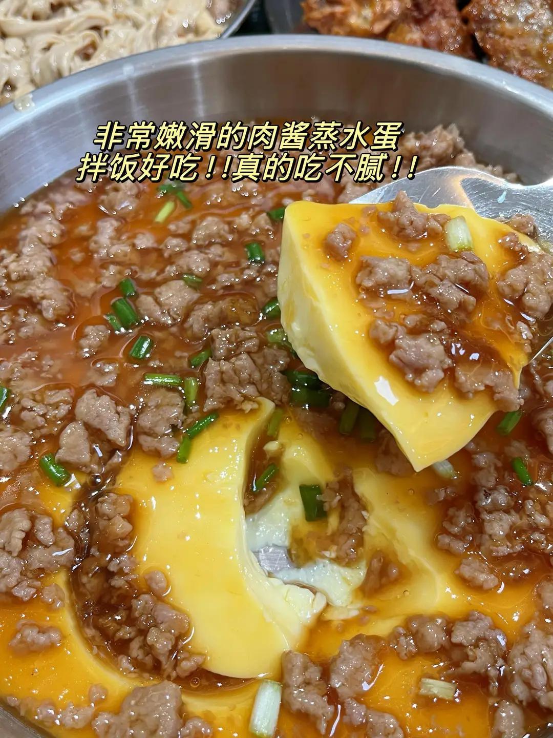 蒸蛋家家會做,配上炒香的肉沫,口感立馬升級。滑嫩嫩的蛋羹,拌上咸香的肉沫,特別下飯,老人小孩都愛。