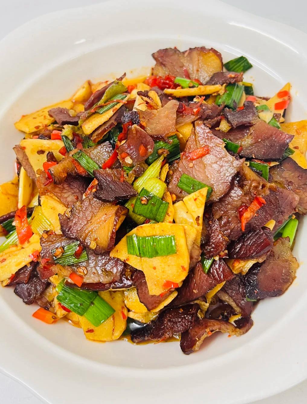 臘肉紅亮透明,咸香撲鼻;冬筍片潔白脆嫩,清甜爽口。夾一筷子,臘肉的豐腴油脂包裹著冬筍,咸、鮮、脆、甜在口中交織,無比下飯。這道菜,吃的是時令的鮮,也是時間的味。