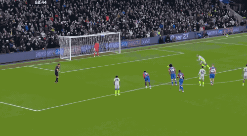 第87分鐘,水晶宮球員配合失誤,替補登場的薩維尼奧狂奔60多米到了禁區,亨德森被迫將其放倒,曼城獲得點球。